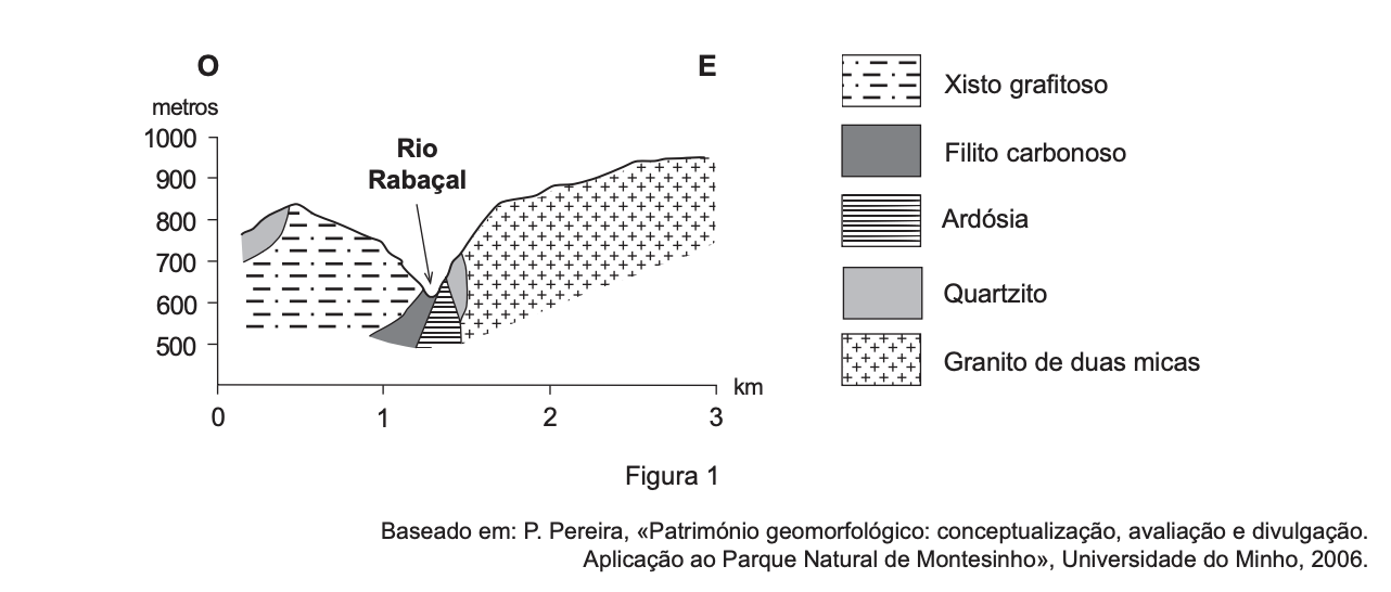 O rio Rabaçal corre num vale encaixado. A Figura 1 representa um corte geológico do vale do rio Rabaçal.