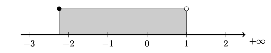 Como $-\sqrt{5} \approx-2,2361$, representando na reta real o conjunto $A=[-\sqrt{5}, 1[$, podemos verificar que, como o intervalo é aberto no limite superior, $1 \notin A$. Logo: