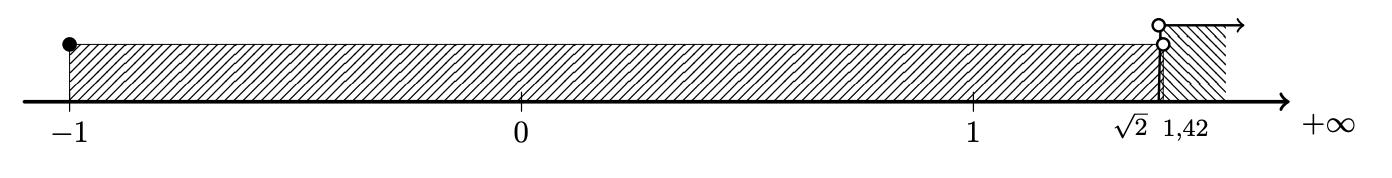Considera o conjunto $B=[-1 ; 1,42[\cap] \sqrt{2},+\infty[$