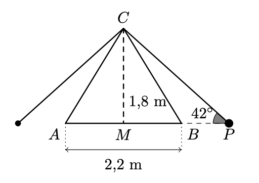 - $\overline{A B}=2,2 \mathrm{~m}$ e $\overline{C M}=1,8 \mathrm{~m}$;