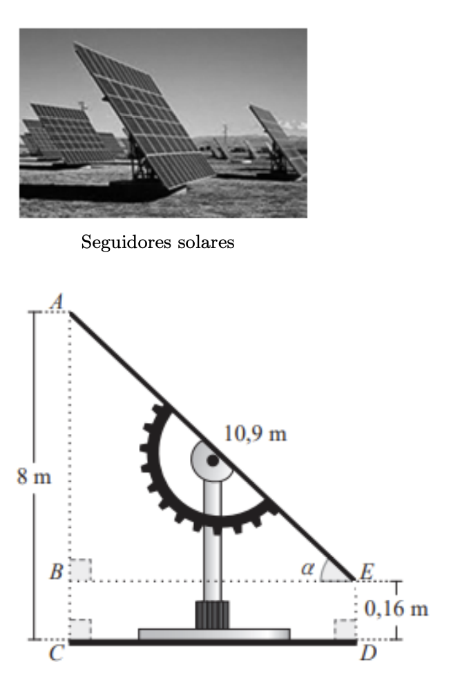 Na figura seguinte (em baixo), está representada, em esquema, uma vista lateral de um seguidor solar numa certa posição.