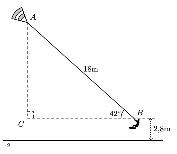 - a distância do ponto $B$ à reta $s$ é $2,8 \mathrm{~m}$;