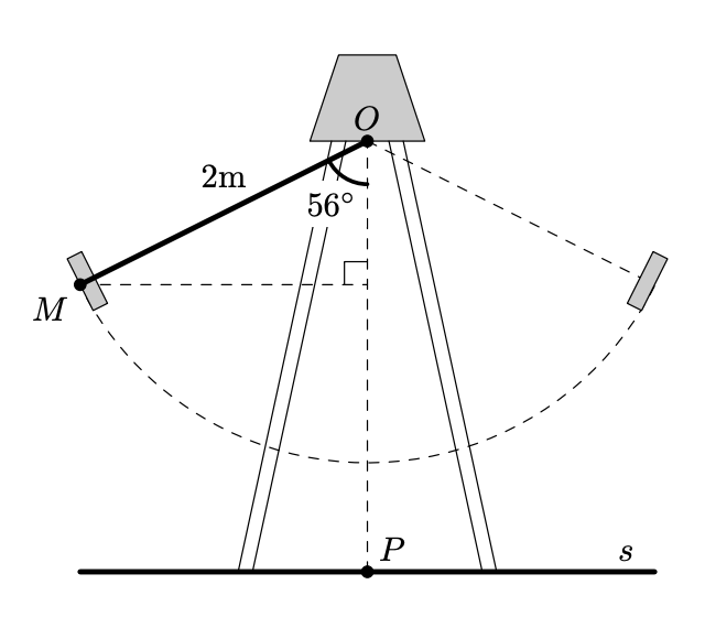 No esquema, o segmento de reta $[O M]$ representa o cabo do baloiço e a reta $s$ representa o solo.