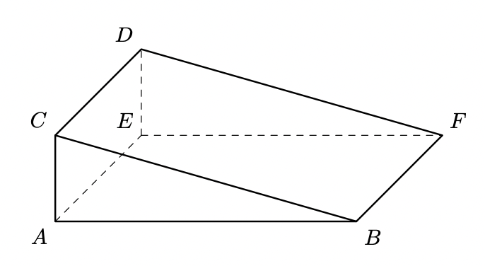 Na figura seguinte, está representado o prisma triangular reto $[A B C D E F]$