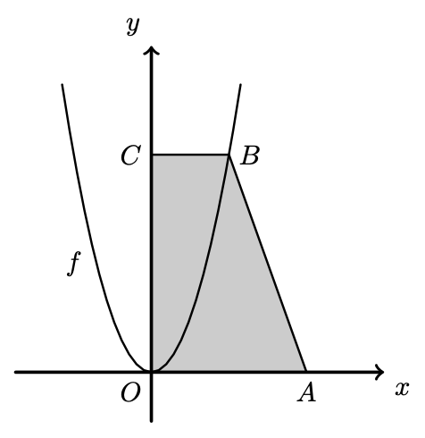 Na figura ao lado, estão representados, em referencial cartesiano, uma função quadrática $f$ e o trapézio retângulo $[O A B C]$