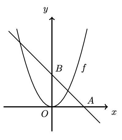 Na figura ao lado, estão representadas, em referencial cartesiano, a reta $A B$ e parte do gráfico de uma função $f$