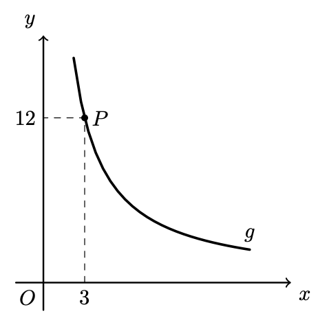 Sabe-se que o ponto $P$ pertence ao gráfico da função $g$ e tem coordenadas $(3,12)$.