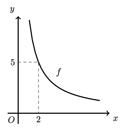 Como a função $f$ é uma função de proporcionalidade inversa, então $f(x)=\frac{k}{x}, k \in \mathbb{R} \backslash\{0\}$ Como o ponto $(2 ; 5)$ pertence ao gráfico de $f$, então $f(2)=5$, e assim, temos que