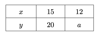 $$15 \times 20=12 \times a \Leftrightarrow 300=12 a \Leftrightarrow \frac{300}{12}=a \Leftrightarrow 25=a$$