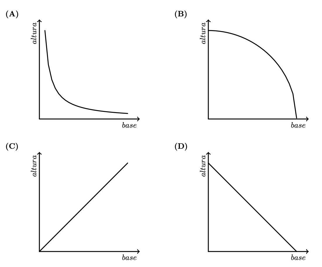 Qual dos gráficos seguintes poderá representar a relação entre a base e a altura de retângulos com $100 \mathrm{~cm}^{2}$ de área?