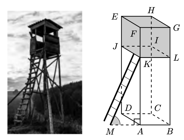 - o prisma reto $[A B C D E F G H]$, de bases quadradas, representa a torre;