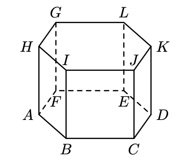 Considera o prisma hexagonal regular $A B C D E F G H I J K L$ representado na figura seguinte.