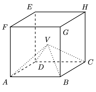 Na figura, estão representados o cubo $[A B C D E F G H]$ e a pirâmide $[A B C D V]$