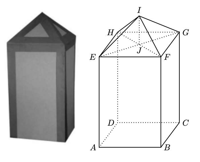 - $[E F G H I]$ é uma pirâmide quadrangular regular, de altura $\overline{I J}$
