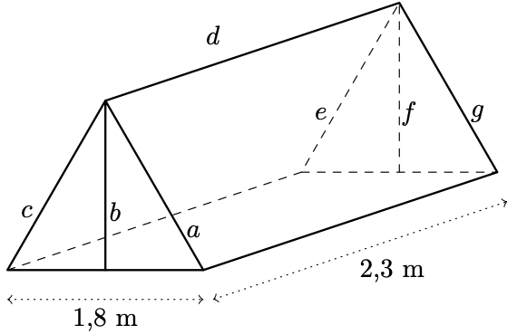 A Teresa e a Carla compraram uma tenda de campismo. A tenda tem a forma de um prisma triangular, cuja base é um triângulo equilátero.