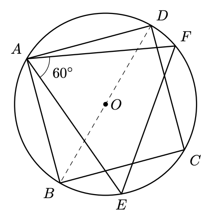 Na figura seguinte, está representada uma circunferência de centro no ponto $O$.