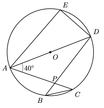 - os pontos $A, B, C, D$ e $E$ pertencem à circunferência