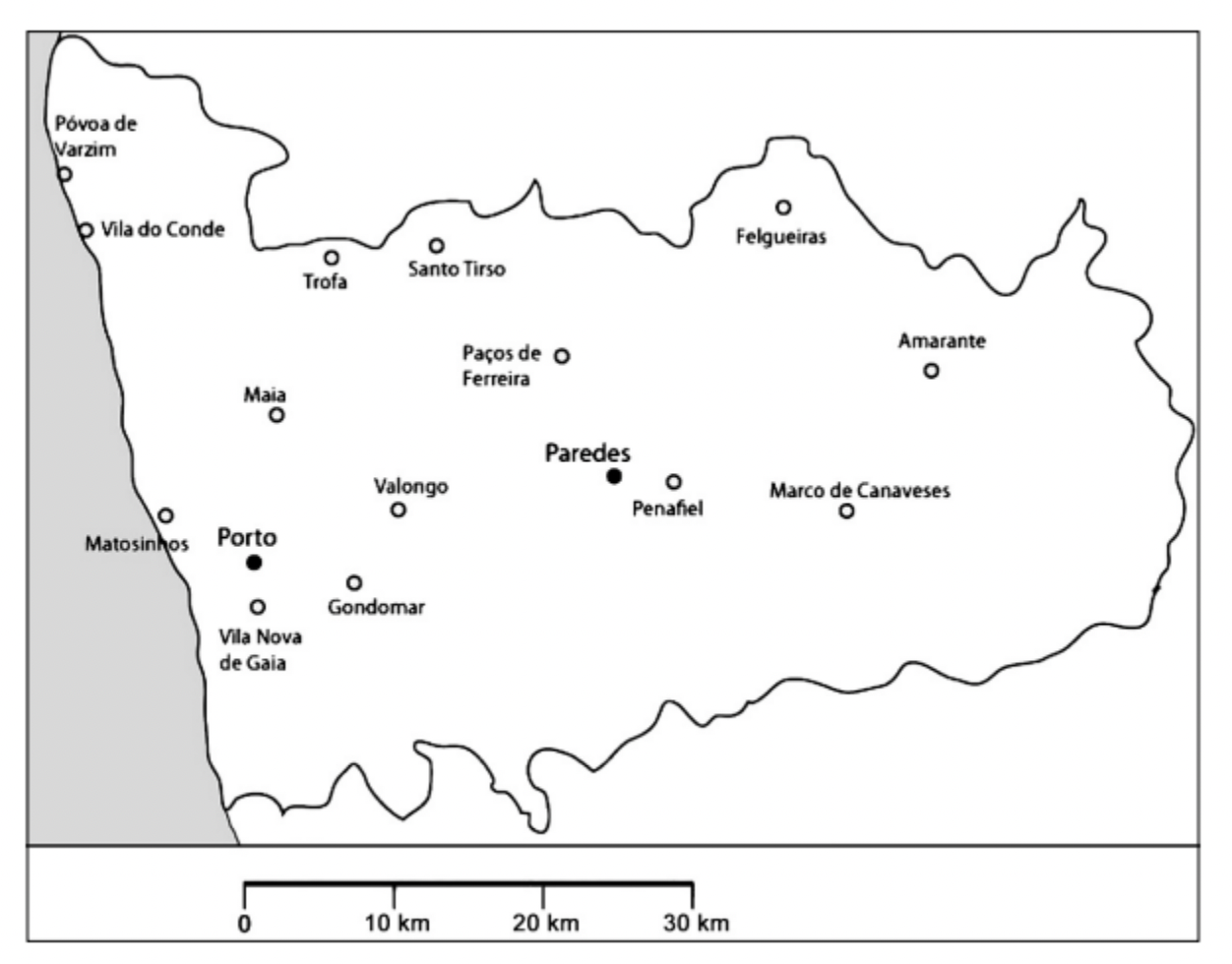 O mapa da figura seguinte representa o distrito do Porto, que o Rui vai visitar com os pais.