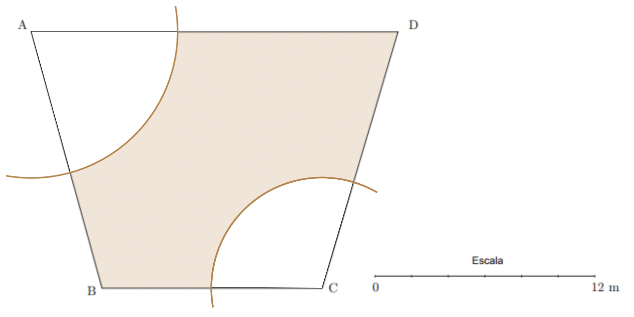 - A distância ao vértice $C$ é superior ou igual a 6 metros.