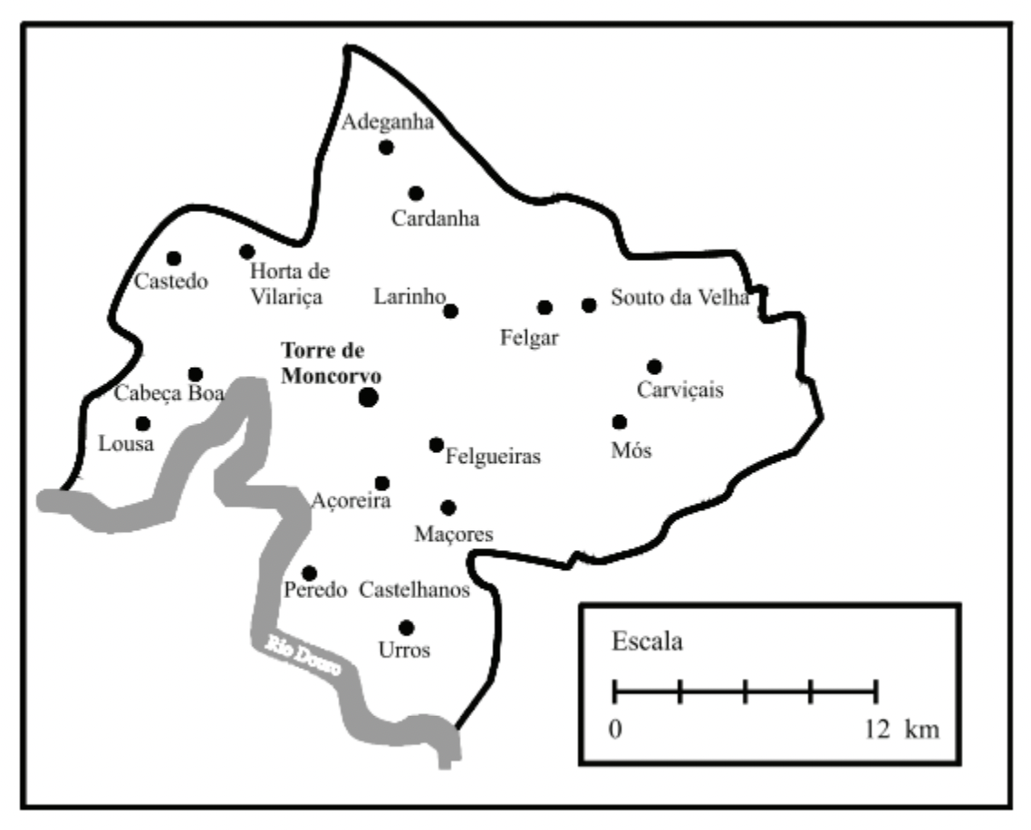 Na figura seguinte, podes observar um mapa do concelho de Torre de Moncorvo.