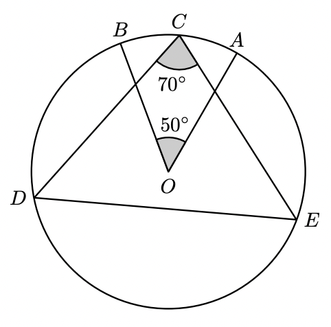 Eu fiz o ângulo CED (180-70 e depois a dividir por 2 já que os segmentos de reta DC e CE são iguais), depois o arco DC menos o arco BC (o arco BC é 50:2 pois os arcos BC e BA são iguais)