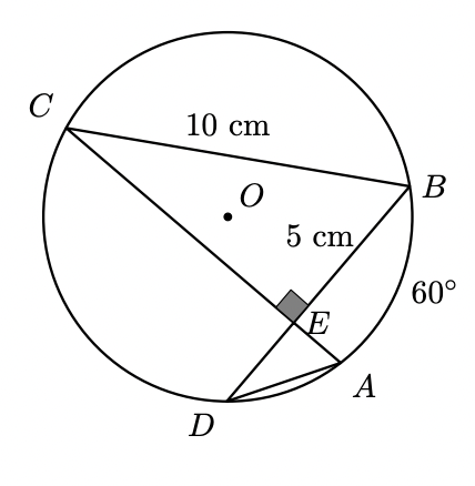 - o ponto $E$ é o ponto de intersecção das cordas $[A C]$ e $[B D]$;