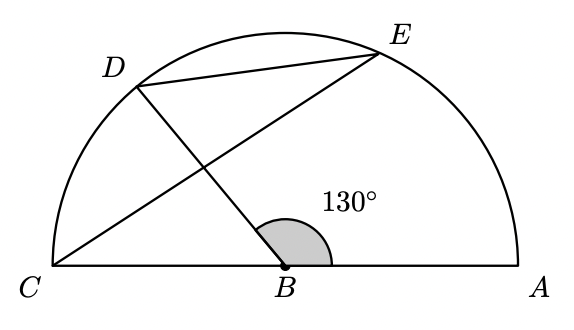 Os pontos $D$ e $E$ pertencem à semicircunferência e o ponto $E$ pertence ao arco $A D$.