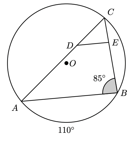- a amplitude do arco $A B$ é $110^{\circ}$;