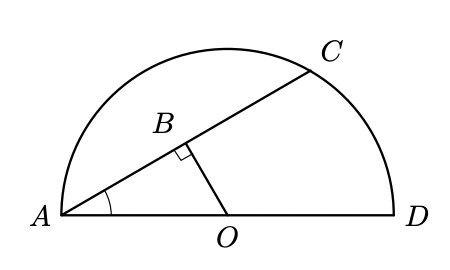 Na figura seguinte, está representada uma semicircunferência de centro no ponto $O$ e diâmetro $[A D]$