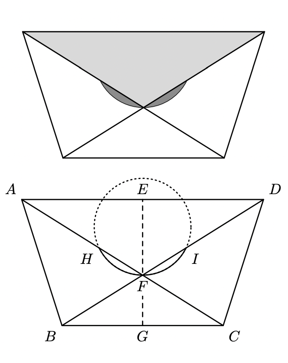 - o ponto $F$ é o ponto de interseção das diagonais do trapézio