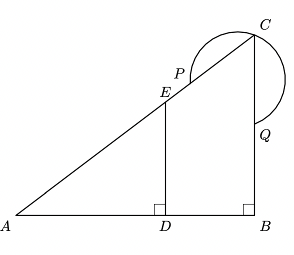 Como o ângulo $A C B$ é o ângulo inscrito na circunferência relativo ao arco $P Q$, temos que