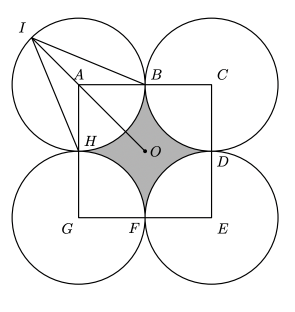- $[A C E G]$ é um quadrado de lado 4 e centro $O$;