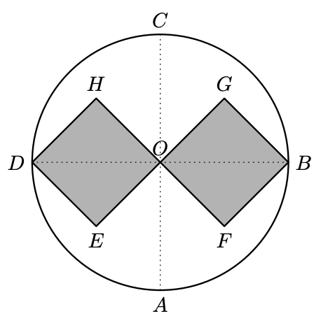 - o diâmetro $[B D]$ é perpendicular ao diâmetro $[A C]$;