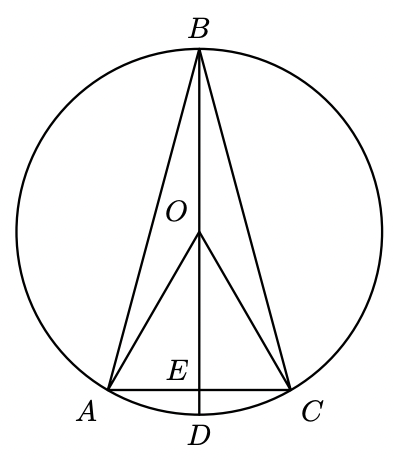 - $D$ é o ponto de interseção do diâmetro $[E B]$ com a corda $[A C]$.