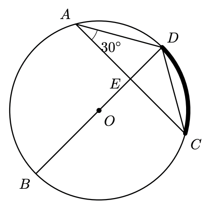 $$\overparen{C D}=2 \times C \hat{A} D=2 \times 30=60^{\circ}$$