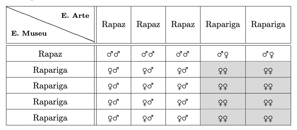 A probabilidade de serem escolhidas 2 raparigas não deveria ser 6 em 10, pois dizem-nos que serão selecionados das equipas Arte do Côa e Museu do Côa