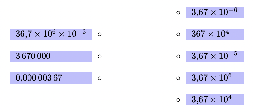 • $36,7 \times 10^{6} \times 10^{-3}=36,7 \times 10^{6-3}=36,7 \times 10^{3}=3,67 \times 10 \times 10^{3}$=$3,67 \times 10^{3+1}=3,67 \times 10^{4}$