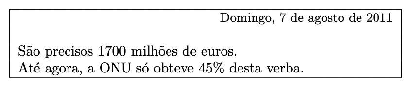 Na figura seguinte, apresenta-se uma notícia publicada num jornal acerca dos fundos de que a ONU (Organização das Nações Unidas) necessitava, em 2011, para atuar no combate à fome em África.