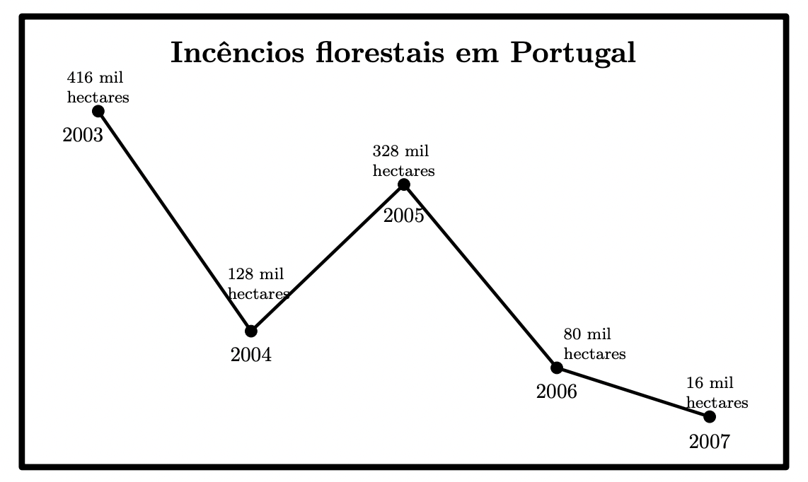 O gráfico seguinte mostra o número de hectares de floresta ardida, em Portugal Continental, entre os anos de 2003 e 2007.