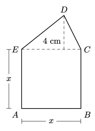 $[A B C E]$ é um quadrado de lado $x \mathrm{~cm}$;