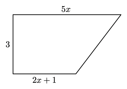 $$A_{T}=\frac{5 x+2 x+1}{2} \times 3=\frac{7 x+1}{2} \times 3=\frac{(7 x+1) 3}{2}=\frac{21 x+3}{2}=\frac{21 x}{2}+\frac{3}{2}$$