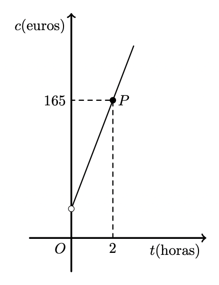 Como o ponto de coordenadas $(2,165)$ pertence ao gráfico da função, o valor a pagar por 2 horas de utilização do barco é 165 euros.