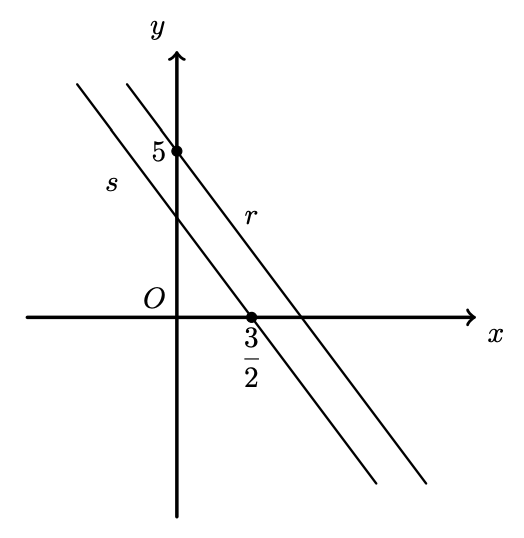 A reta $s$ passa no ponto de coordenadas $\left(\frac{3}{2}, 0\right)$.