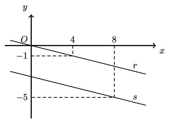 A reta $s$ passa no ponto de coordenadas $(8,-5)$.