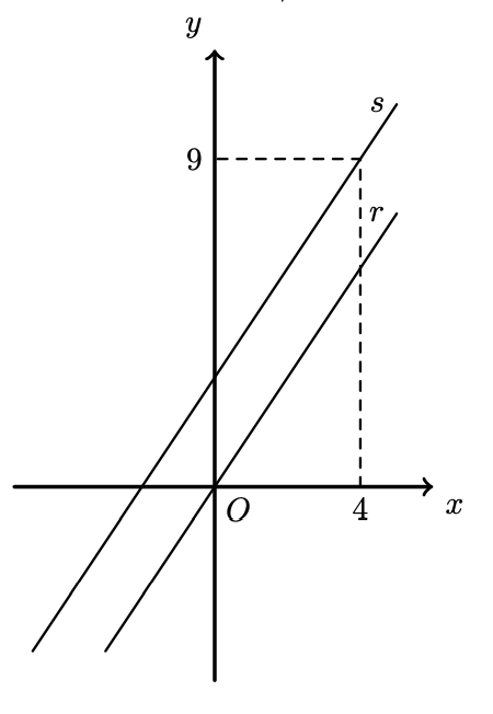 - o ponto $P$ tem coordenadas $(4,9)$ e pertence à reta $s$.