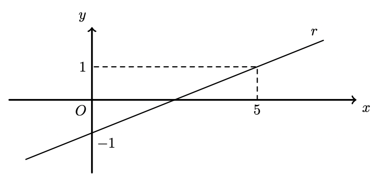 Sabe-se que os pontos de coordenadas $(0,-1)$ e $(5,1)$ pertencem à reta $r$.