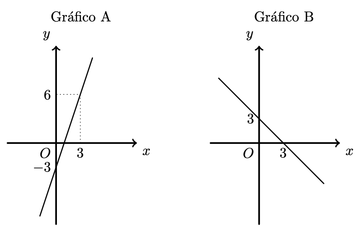 E assim verificamos que o gráfico da função $f$ é uma reta que interseta o eixo das ordenadas no ponto de coordenadas $(0,3)$, ou seja, a ordenada na origem é 3 e não -3 como se observa no Gráfico A