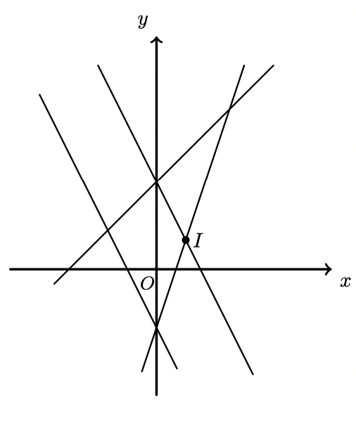 O ponto $I$ é o ponto de interseção de duas dessas retas.