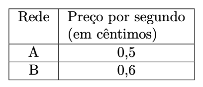 Para efetuar chamadas do seu telemóvel, para duas redes (A e B), o preço, em cêntimos, que o Paulo tem a pagar por cada segundo de duração de uma chamada é o que está indicado na tabela.