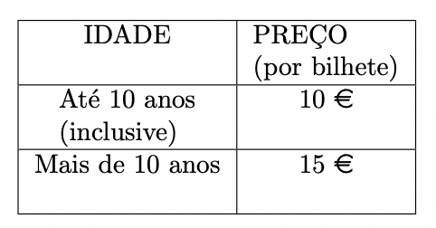 Na tabela seguinte, podes observar o preço dos bilhetes, em euros. .
